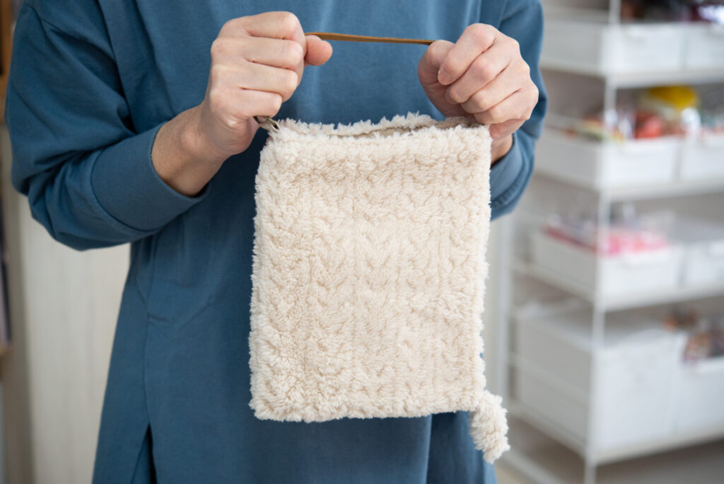 バックの持ち手はご自身でお好きな長さや色のひもをお使いいただくことも出来ます!