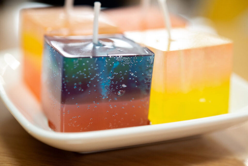 透明なジェルワックスを固めて作成したジェルキャンドルもございます!