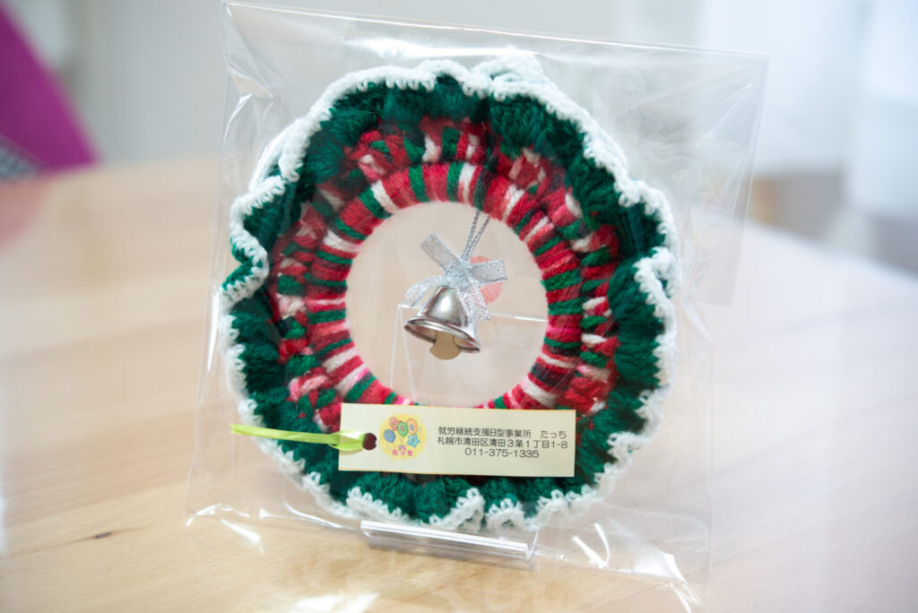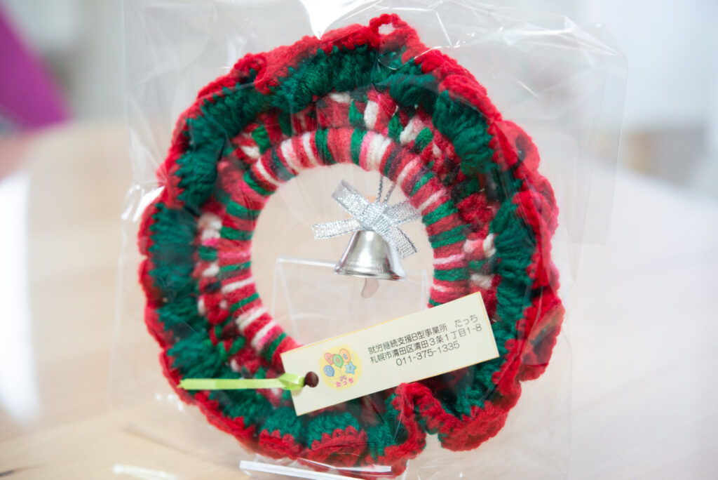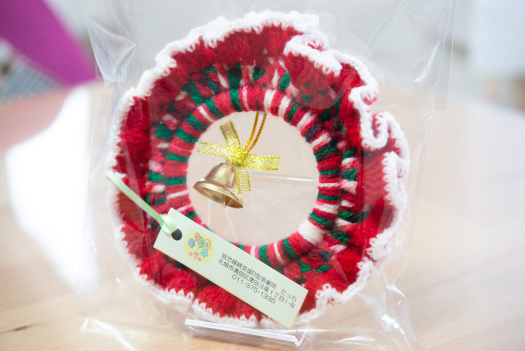 手編みならではの温かみと、クリスマスを意識した毛糸の色でシーズンを彩ってくれます。