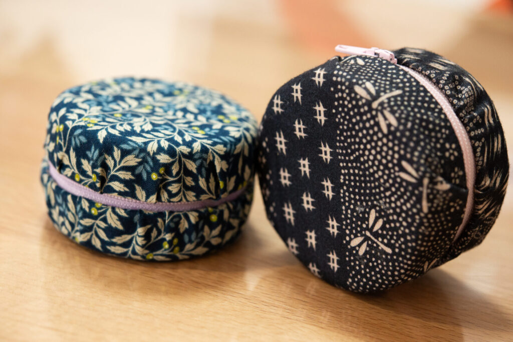 今回の作品は瓶の蓋を加工し、様々な布やチャックを付け小物入れに仕上げました。