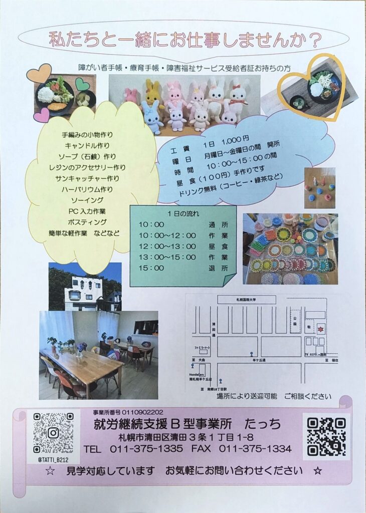 【募集】たっちで一緒に社会参加をしませんか?【利用者様募集中】