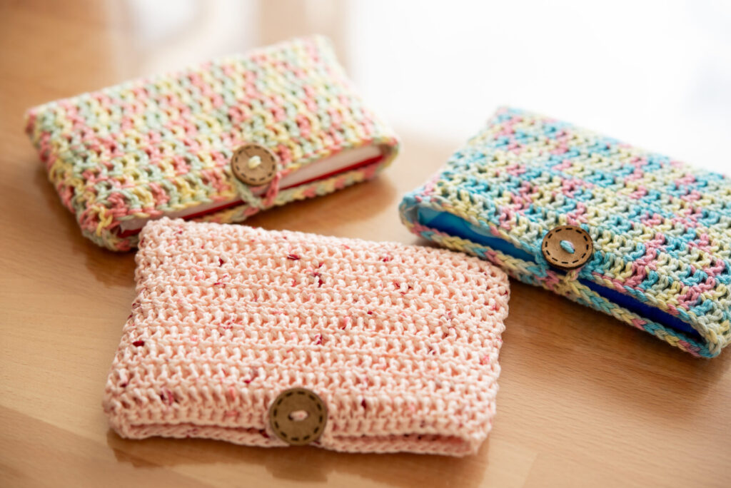 それぞれ編み目の形が違って、使う毛糸の色でも雰囲気が変わります。