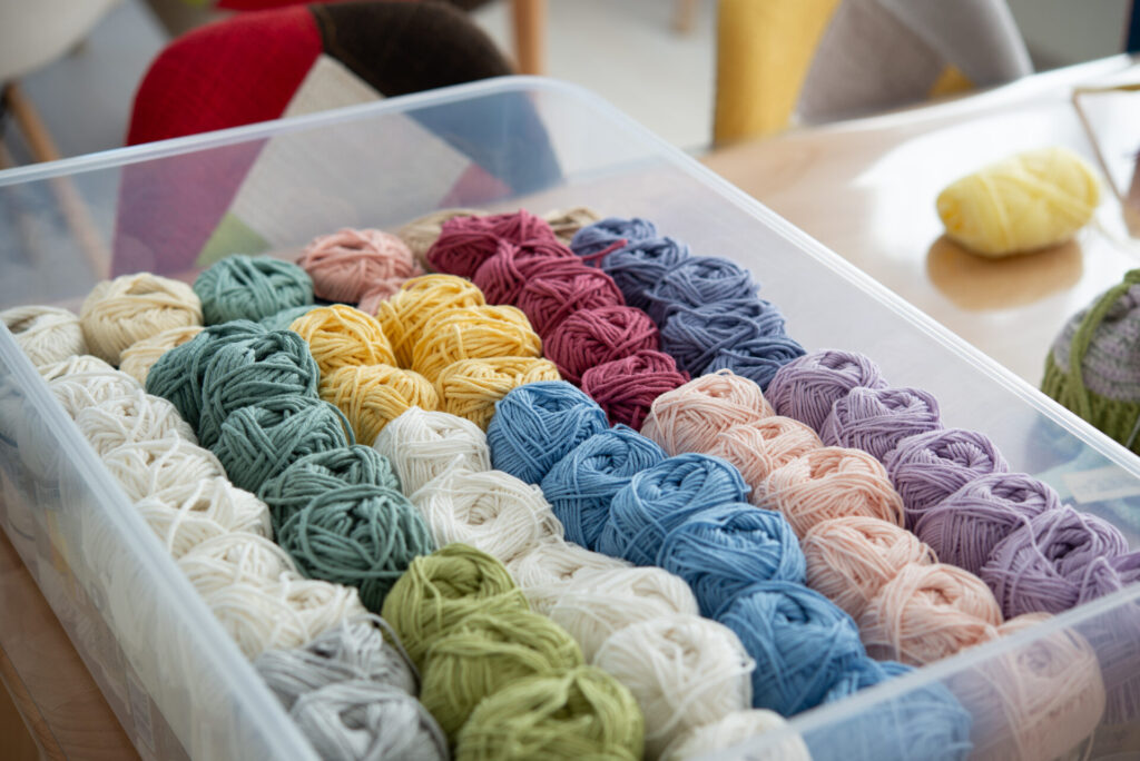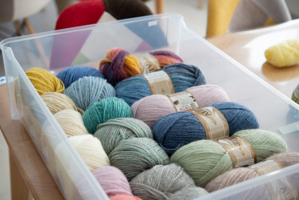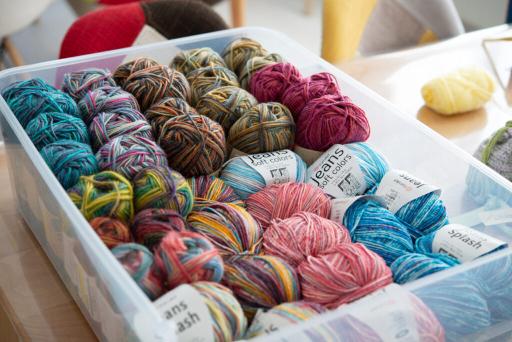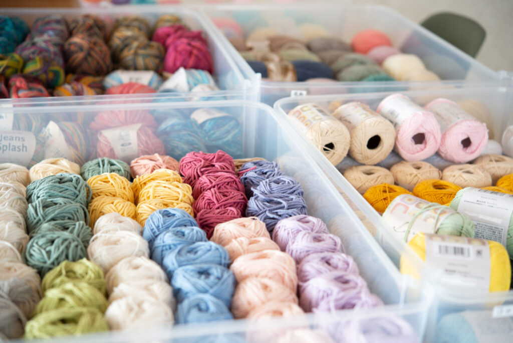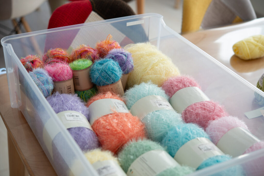 様々な素材の毛糸を用意しています。